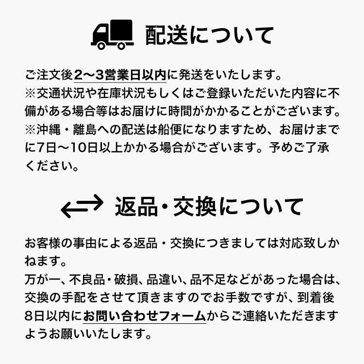 ※沖縄・離島への配送は船便になりますため、お届けまでに7日~10日以上かかる場合がございます。予めご了承ください。